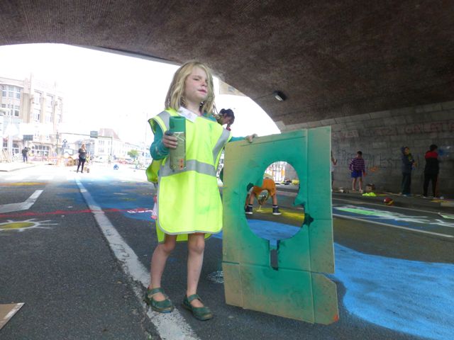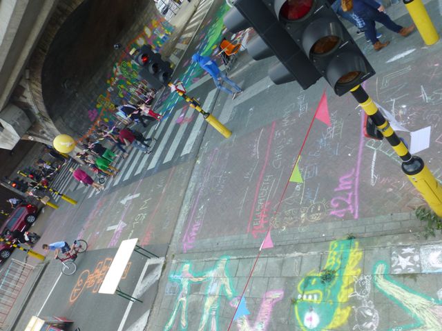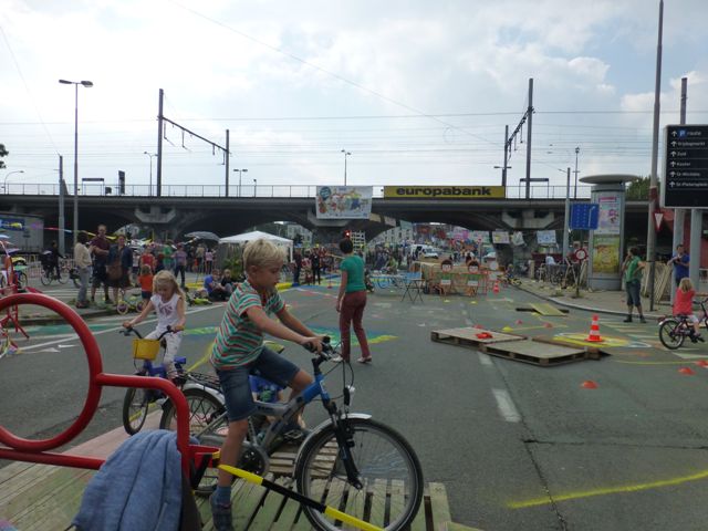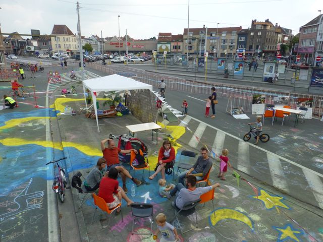 Op 14 september 2014 ('autoloze zondag') werd de Dampoort een autoloze zone van meer dan 4500m², het StAD's plein. Een ruimte van passage wordt zo tijdelijk een ontmoetingsplek. Het grauwe asfalt wordt een kleurrijke stoepkrijtoase. Waar vanalles te doen was: Die dag was trouwens de hele Gentse binnenstad autovrij. Allerlei activiteiten in een aangename omgeving: reden te over om erop uit te trekken met de fiets. Dit jaar dus voor het eerst met de Dampoort, waarmee we willen aantoonden dat het ook leeft in Sint-Amandsberg.