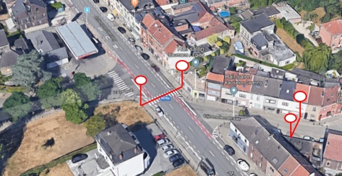 Combineer dit met een redelijke stroom fietsers, en dan weet je dat een kleine onoplettendheid bij chauffeurs of fietsers al tot een ongeval kan leiden. Dus neen, de situatie op dat meetpunt was verre van veilig. Op het uur tijd dat we daar zaten, zagen we inderdaad verschillende kleine conflicten. Op dat pleintje volgt de weg bovendien een bochtig parcours, wat het gedrag van tegenliggers moeilijk in te schatten maakt.